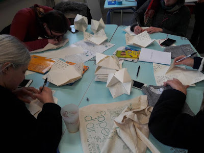 Prochainement, je reçois les travailleurs handicapés de l’A.F.E.J.I du Val de Lys d’Armentières. Ils seront un groupe de 8 personnes qui viendront 6 matinées à l’atelier. L’association leur propose chaque année des formations avec des artistes. Je n’ai jamais vraiment travaillé avec des personnes handicapées, j’appréhende un peu. Pour l’année 2017 rien n’est encore prévu mais on m’a toujours sollicitée grâce à mon réseau associatif. Après, le problème est que ces associations dépendent beaucoup de subventions extérieures.