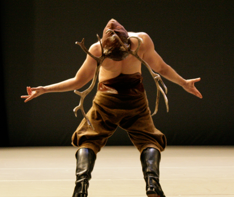 Venari clôt ce triptyque. Rituel de la chasse à courre, le mythe grec d’Actéon. Chasseur transformé par la déesse Arthémise et les études de Georges Bataille sur la peinture pariétale ont été les sources de ce solo. Pause du geste comme un silence et éclat du corps dans l’espace s’alternent subtilement pour donner vie à la mort… Sublime Damien Jalet ! et merveilleuse approche du Louvre Lens…
