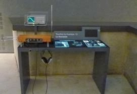 Après avoir écouté via votreaudioguide une introduction présentant le parcours, débutez votre circuit parle module sur la viole à l'étage Le XVIIe siècle : la naissancede l'opéra. Chaque module est construit sur le même modèle. L'instrumentest fixé en « position de jeu » sur la gauche, pincez les cordes de laviole. Au centre, regardez des visuels d'un musicien jouant del'instrument et touchez à droite des échantillons de bois (ébène etépicéa), du colophane, du crin de cheval, à l'emplacement dédié aux expériences. Par ailleurs vous pouvez regarder un film de quatre minutes sur un écran encastré dans le module, décrivant le mode d'utilisation des dispositifs, apportant des éléments d'information complémentaires et montrant un musicien jouant l’instrument.