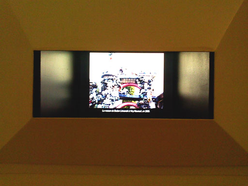 Il s’agissait d’un dispositif assez curieux, un petit écran qui doit faire environ11 pouces encastré dans le mur où sont diffusées des images, en boucle, sur la vie et les œuvres des artistes, leurs maisons qui sont imprégnées par la personnalité des « créateurs » qui sont exposées dans cette salle.