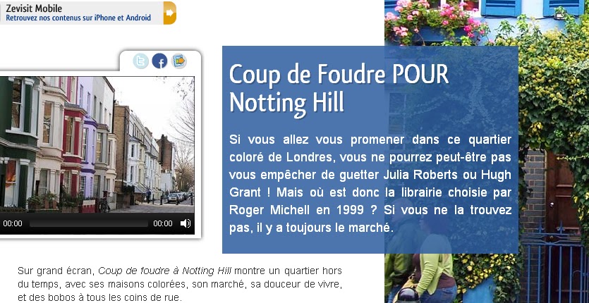 Finalement les conseils données dans la visite audio, proposée par ZeVisit, de Notting Hill, m'ont été utiles. Je n'ai pas eu à chercher la station de métro à laquelle je devais m'arrêter, je savais où je pouvais écouter un concert tout en buvant un délicieux thé et où aller au marché de Portobello Road pour trouver souvenirs et babioles pas chers. Même j'ai téléchargé et écouté d'autres visites disponibles pour Londres, dont des quartiers que je connais très bien, mais chacune m'ont offert de nouvelles connaissances et de nouvelles envies. Au départ, perçu comme une succession de clichés, les visites audio de ZeVisit sont des outils interactifs, « fun », pratiques et utilisables tout autour de la planète, je ne vais donc pas désinstaller cette application de ma tablette de ci-tôt !