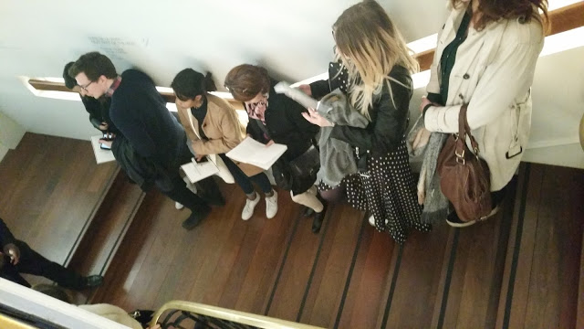 Au programme de cette soirée apparait un paragraphe sibyllin qui annonce que la chorégraphe et son équipe nous feront « partager » un moment de danse. Mais surprise ! Si la plupart de nous s’attendait simplement à profiter d'un morceau de ballet, une fois tous rassemblés dans le Foyer, nous n’assistons pas à une démonstration, mais nous participons. Alors qu’on est en train d’essayer d’apprendre quelques pas tirés de Xerse, (premier Opéra qui ouvre la saison 2015), je ne peux pas m’empêcher de faire une similitude très irrespectueuse et de nous imaginer élèves de Zumba dans une gym d’exception.
