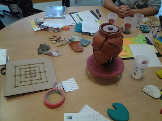 L’équipe de museomixeurs formée de six personnes aux disciplines très différentes a dû imaginer un prototype répondant à ces enjeux. Mais comment rendre compte de la recherche scientifique tout en imaginant une interactivité qui faciliterait la compréhension du visiteur.