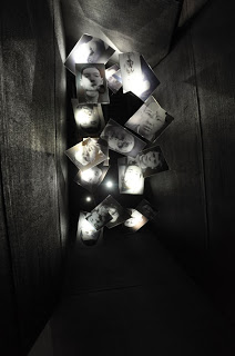 Derrière le photomaton, plusieurs écrans montrent les différentes photographies prises par les visiteurs mais seulement dans un ordre précis. Chaque photographie est alignée en fonction du même groupe sanguin des visiteurs.