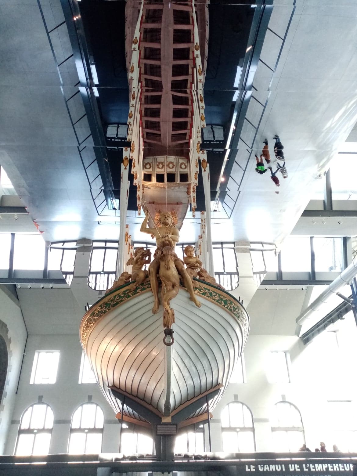 La singularité de l’établissement apparaît sitôt le seuil franchi : nous pénétrons en effet non pas dans un musée mais dans d’authentiques écuries occupées par des chevaux, poneys et ânes qu’il est possible d’observer dans leurs boxes et leurs stalles. Chacun possède une plaque à son nom, et nous pouvons également apercevoir des éléments de leurs harnachements dans des alcôves réservées à la sellerie. Ces animaux représentent une partie de la quarantaine d’équidés qui participent aux spectacles et démonstrations se déroulant régulièrement dans les carrières et sous le dôme des Grandes Écuries. Des trophées de chasse historiques achèvent de conférer une atmosphère particulière à cette longue salle haute de plafond, où plane l’odeur caractéristique d’un centre équestre. L’entrée du musée proprement dit survient de manière presque anecdotique : nous sommes invités à nous engager dans un couloir entre deux boxes et pénétrons dans un lieu à l’architecture singulière. Le musée est divisé en une quinzaine de petites salles en enfilade faisant le tour de la Cour des Remises. L’ensemble forme un carré autour de ladite cour où se dresse une carrière d’entraînement. A intervalles réguliers, il nous faut sortir à l’air libre et faire quelques pas en extérieur pour accéder au tronçon suivant, car toutes les salles ne sont pas directement accolées. Cette alternance intérieur/extérieur donne à la visite un rythme particulier et permet, avec un peu de chance, d’assister à une reprise d’équitation dans la carrière. Car ce n’est pas pour rien que l’on parle de musée vivant : loin de se résumer à un simple lieu d’exposition d’objets, les Grandes Écuries accueillent quotidiennement des cavaliers qui viennent s’y entraîner devant le public, en dehors des heures de spectacles. Des démonstrations de dressage d’une durée de 30 minutes sont même incluses dans le prix du billet d’entrée. Problème : elles n’ont pas lieu en décembre ni en janvier, or ce détail n’est stipulé nulle part. Il a fallu que j’aille me renseigner à l’accueil pour apprendre qu’il n’y avait pas de démonstration le jour de ma visite. Outre ma déception, j’ai trouvé dommage d’avoir payé le prix habituel sans pouvoir profiter de l’ensemble des prestations annoncées sur le site Internet et dans la brochure. Une réduction du prix aurait été appréciable pour compenser cette absence de démonstration.