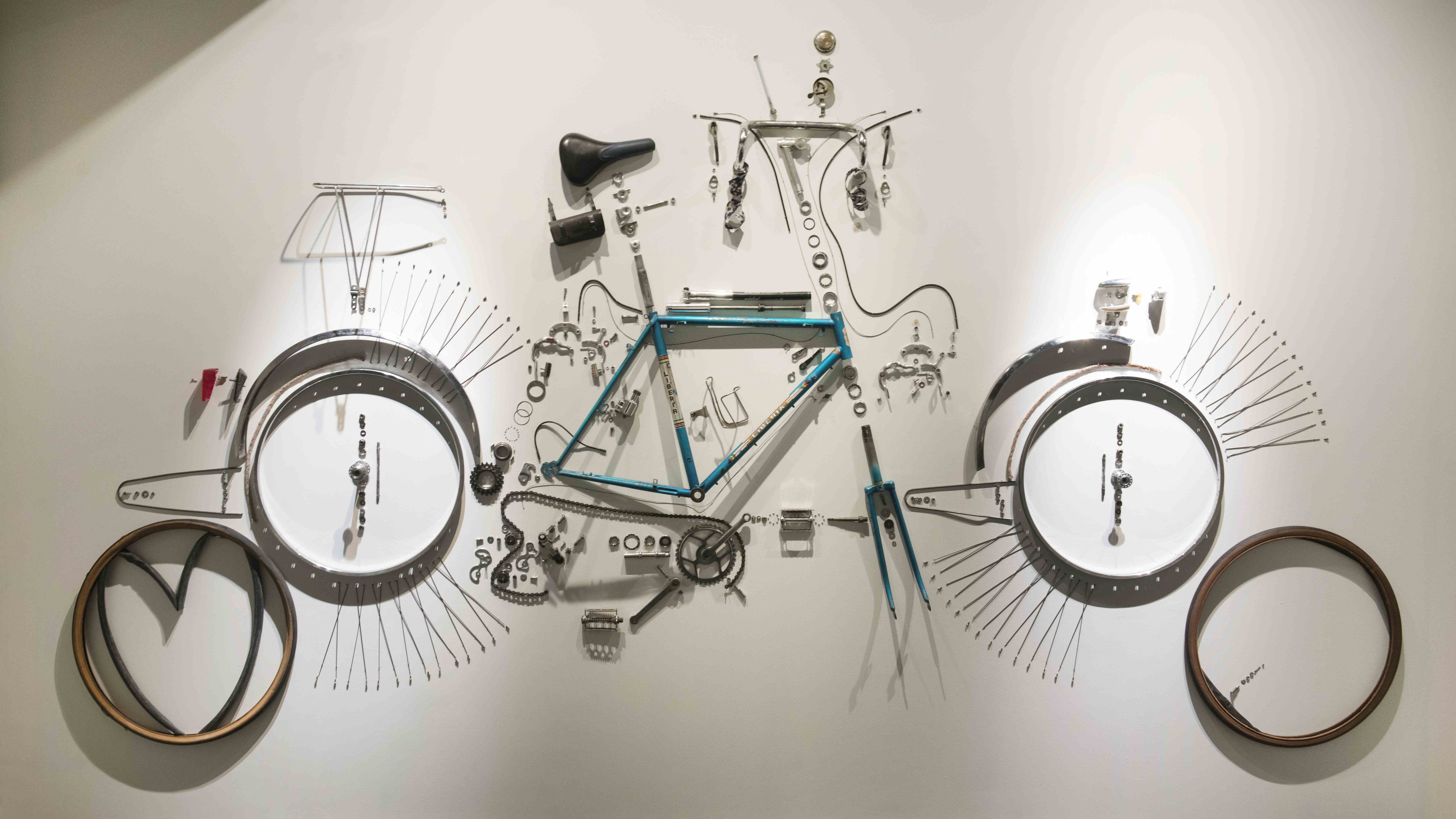 Le choix de construire le propos en partant de la pratique de la marche comme manière de s’inscrire dans le monde et de revendiquer sa protection, plutôt que de commencer une nouvelle fois par le constat alarmant d’une destruction déjà en cours, permet de décaler le regard et d’approcher le sujet de l’écologie autrement que par un catastrophisme décourageant. Don de l’artiste au musée, les bobines monumentales et multicolores de l’installation « Desire Lines » de Tatiana Trouvé se dressent ainsi au centre de la première salle, attirant les regards où que l’on se trouve dans l’espace. Le titre, non dénué de poésie, fait allusion au terme utilisé par les urbanistes pour désigner les cheminements officieux et intuitifs empruntés par les piétons pour couper au plus court, plutôt que les itinéraires officiels prévus à cet usage. En effet, chacun des fils enroulés sur les deux-cent-douze bobines matérialise un itinéraire de promenade – un chemin de désir – traversant Central Parc, tout en évoquant plus métaphoriquement les grandes marches de l’humanité : l’installation prend ainsi la forme d’un vaste répertoire poétique.