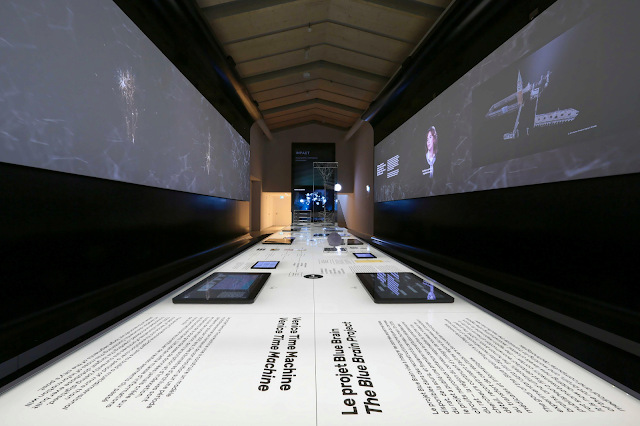 Cet espace se définit comme un lieu entre art et sciences. L’exposition Venice Time Machine, montée par les chercheurs et historiens de l’université, en collaboration avec le FabLab est une réelle machine à remonter le temps dans l’histoire de Venise. L’université détient un nombre incalculable de numérisations d’archives sur la ville de Venise et elle a souhaité les présenter au public.